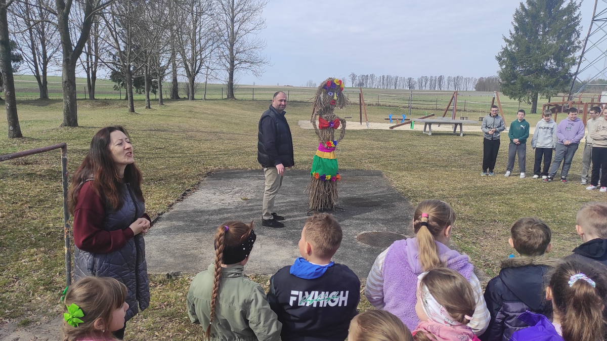 Uczniowie klasy ósmej tradycyjnie przeprowadzili zajęcia w młodszych klasach. Przedszkolaki przygotowały część artystyczną, następnie wszyscy wyruszyliśmy razem z Marzanną na teren boiska szkolnego. Zebrani wokół słomianej panny donośnymi okrzykami dzieci pożegnały zimę. Mamy nadzieję, że wiosna posłucha przedszkolaków i zostanie z nami na dobre.